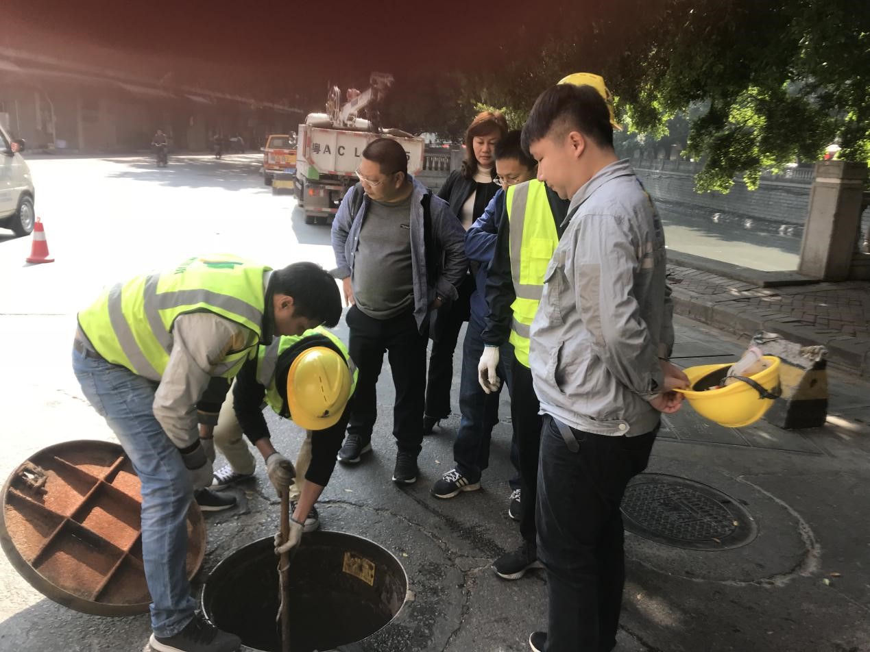 黃智佳帶隊打開井蓋,檢查污水井情況