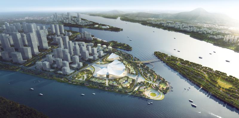 IFF永久會址項目位於廣州市南沙新區明珠灣區橫瀝島尖東側,項目主要包含國際會議中心、國際會議服務酒店、政要公館三個部分,總用地面積約20.35萬平方米,總建築面積約25.58萬平方米。同濟大學建築設計研究院四院副院長譚勁松在開工會上表示,目前項目總圖設計、會議中心設計、酒店設計、公館設計及各專業方案設正在推進深化方案。