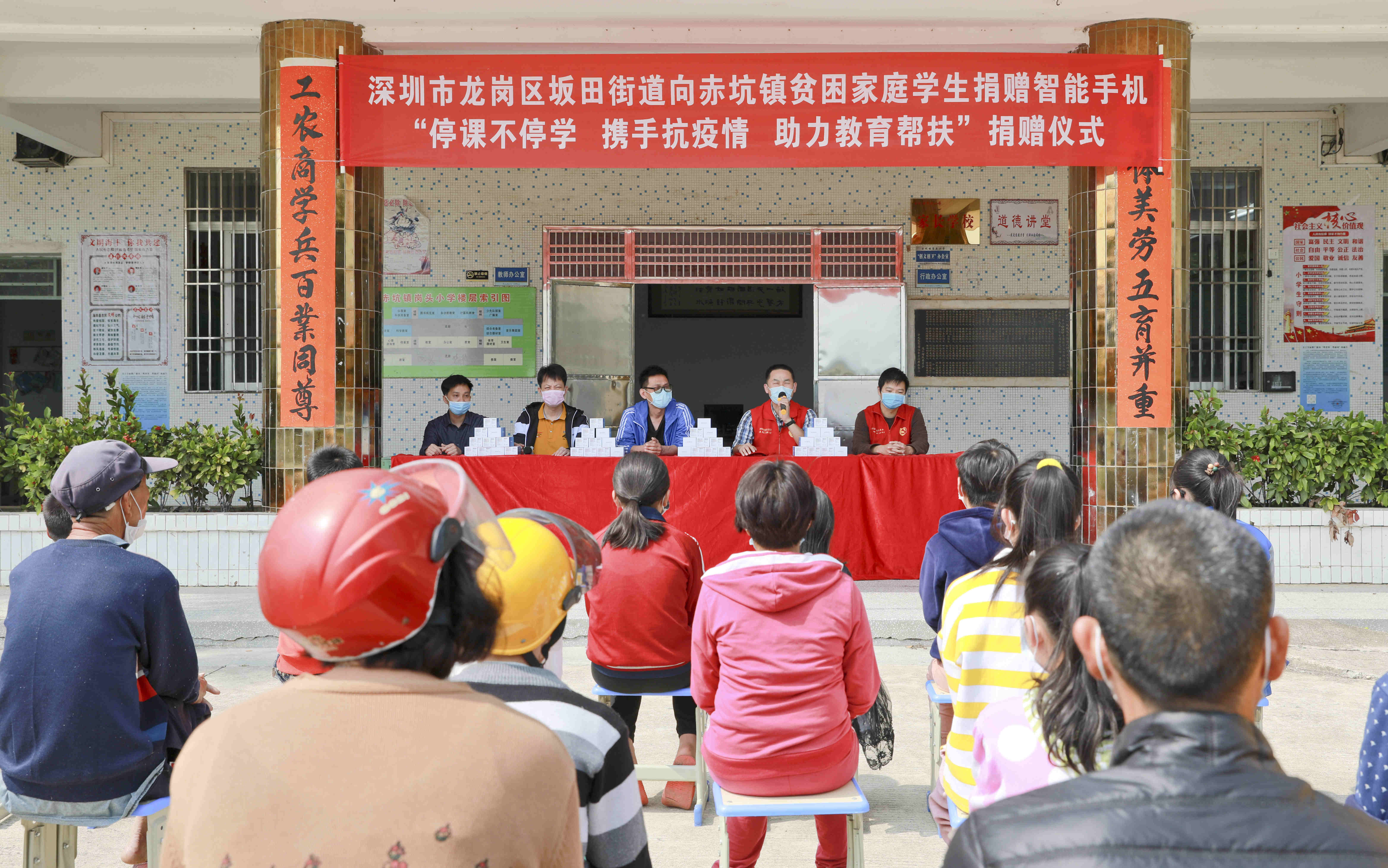 「3月12日,我們駐村工作隊收到當地學校反映的信息,說下周一(3月16日)學生們需要正式開始上網課,目前還有很多戶貧困家庭買不起智能手機給孩子學習,想請我們幫助解決。結合我們幫扶的崗頭村和下埔村之前統計的手機缺口情況,當天我就把學校的倡議書轉發到了街道的幫扶群,街道各幫扶責任人、各黨支部黨員及親屬、坂田商會和坂田義工聯積極響應,在三天的時間內就募捐到92台全新智能手機,100%保證了定點幫扶片區孩子們的手機需求。」曾聰表示。
