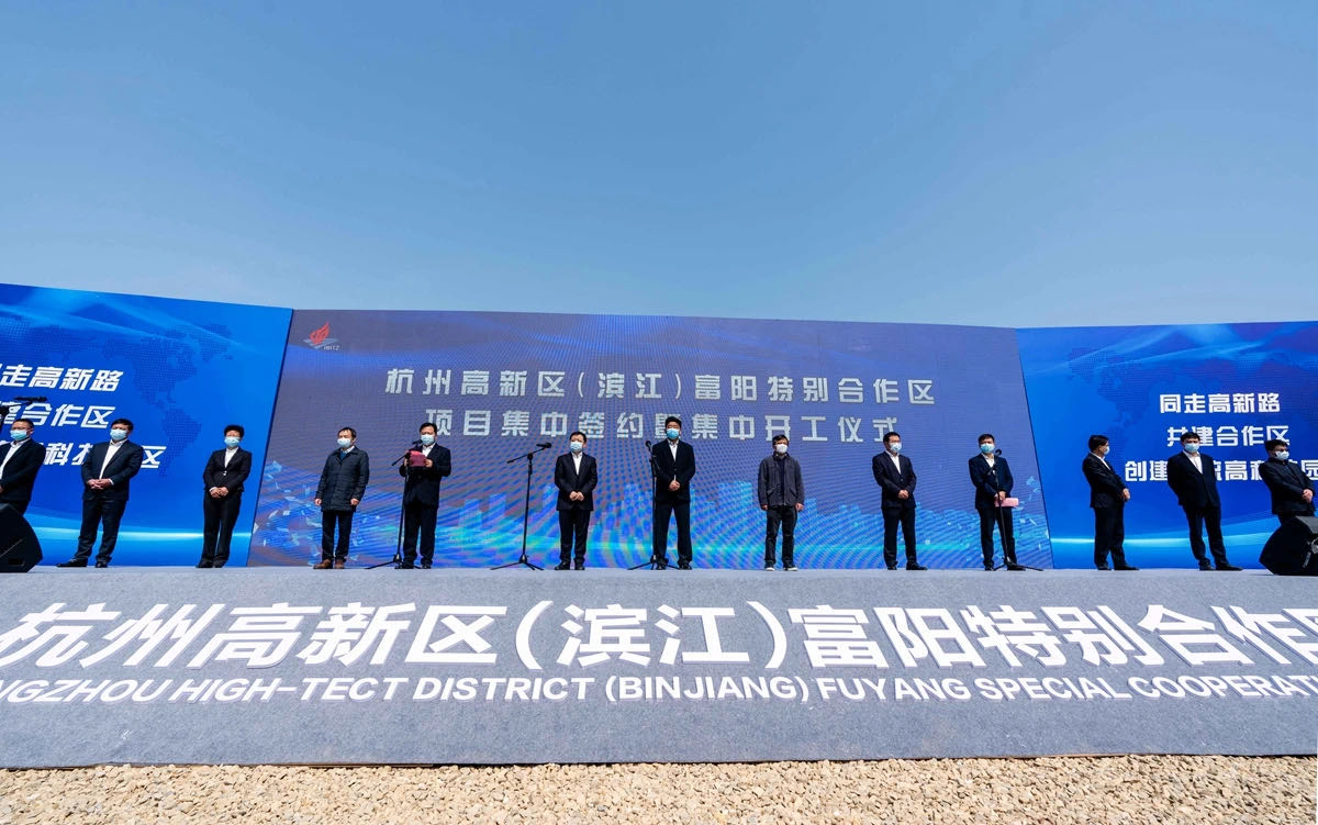 富陽區委書記朱党其在致辭中表示,杭州高新區(濱江)富陽特別合作區項目集中簽約暨集中開工,是繼去年8月28日特別合作區正式掛牌以來的又一樁大喜事,標誌著濱江與富陽兩區合作收穫豐碩成果,標誌著濱富特別合作區建設邁出實質性步伐,也標誌著富陽加快打造杭州市高新製造業示範區邁出堅定的步伐。