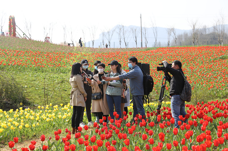 黃山市委宣傳部副部長吳紹輝指:我們以“花”會友,通過以“花”傳遞黃山市春的信息、如詩如畫的景致,促進旅遊經濟在疫情之後儘快熱起來,火起來。