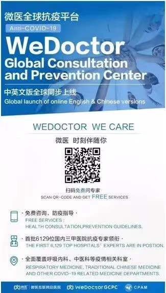 可關注“微醫健康”公眾號,點擊底部“即時疫情-海外疫情救助”,或掃描下圖二維碼,即可進入“微醫互聯網總醫院全球抗疫平臺”服務頁面,內有防疫科普知識、“免費諮詢華人醫生”“海外同胞心理諮詢通道”等專區。服務時間為每天24小時。