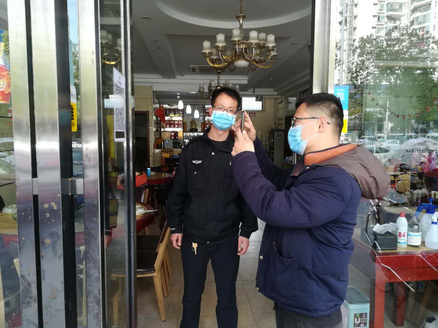 針對包河區開放堂食的餐飲戶,城管部門推行一店一碼,顧客入店除佩戴口罩、測量體溫及登記信息外,還需掃碼,出現綠碼後方可入店。