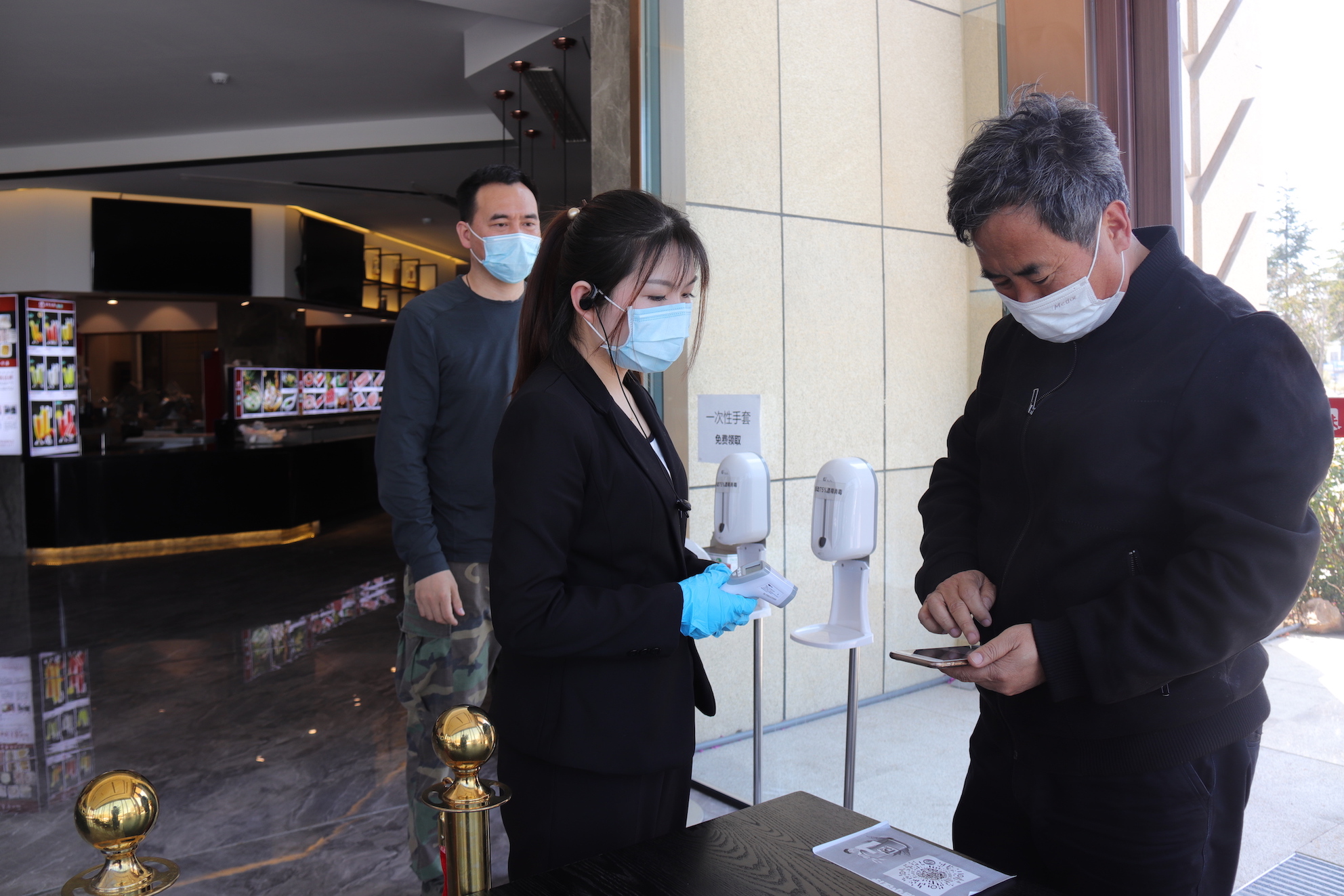 中午12點,記者來到萊西市真味火鍋店,一進店就有工作人員引導顧客通過“公共場所掃碼系統”進行登記,在測量過體溫並使用自動酒精消毒機對雙手進行消毒後進店用餐。“現在到飯店吃飯都要隔桌坐,進店消毒各方面看着都挺讓人放心的,所以今天就帶孩子出來解解饞。”市民侯女士告訴記者。