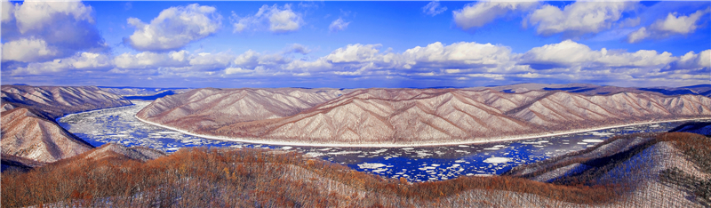 鶴崗有大美,美在中俄界江,尤以「龍江三峽」為最美。在這裡,黑龍江水將內外興安嶺攔腰「斬」斷,形成三段峽谷:奇峰多姿的龍門峽、蜿蜒欲騰的金龍峽、山雄水幽的金滿峽。這裡既有灕江的秀色,也有岷江的磅礴;既有長江三峽的雄奇,又有桂林山水的清雋,勾勒出一幅淡雅、清新、豪放的北國山水畫廊。