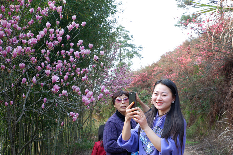 據瞭解,紫金山生態園是2007年流轉承包2000多畝山場打造,建有400餘畝的杜鵑花觀光帶,每年春季花兒綻放都吸引大量遊客前來打卡,依託花海經濟帶動鄉村旅遊發展。杜鵑花又名映山紅,盛開時期為清明前後,屆時紫金山景區的漫山杜鵑將絕美綻放、點亮山崗。
