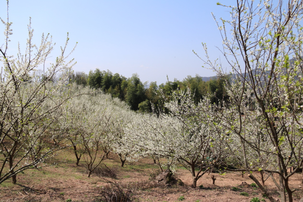 休寧齊雲花果山上的千畝李花競相開放,猶如一片雪的海洋