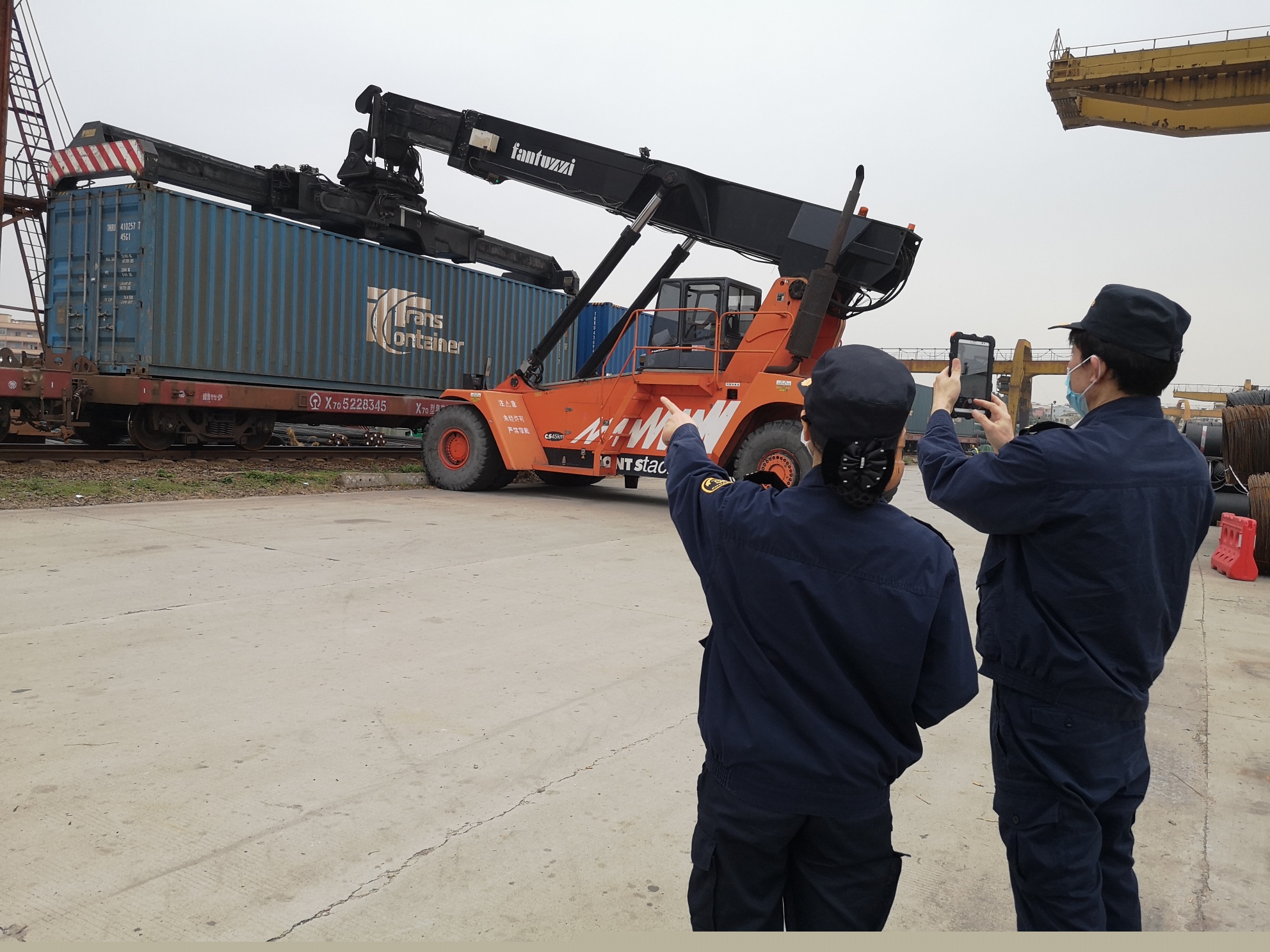 廣州車站海關關員對「穗滿俄」中歐班列進行監裝