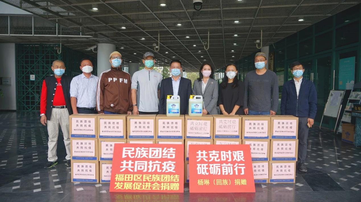 福田區民族團結發展促進會各族同胞同心聚力,為助力抗疫積極捐款捐物。據統計,從2月到3月期間,共捐助深圳市救助站、各宗教場所以及福田區慈善會消毒液110箱、消毒噴劑1000支及現金20000元等。參與捐款捐物的有深青海民和籍拉麵館少數民族群眾,福田民促會會長孔麗、黨支部書記蘭林、秘書長楊琳以及深圳市寧夏商會等。
