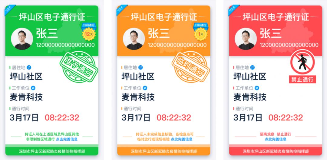為切實方便群眾,坪山區委區政府在短時間內率先開發出了電子通行證系統,將各街道、部門推出的信息申報和通行管理二維碼,整合為「電子通行證二維碼」,以電子通行證替代各圍合點、各單位自行製作的紙質通行證,在全區範圍內推廣使用並明確其全區通行的效力,真正做到「一證在手、暢行坪山」。