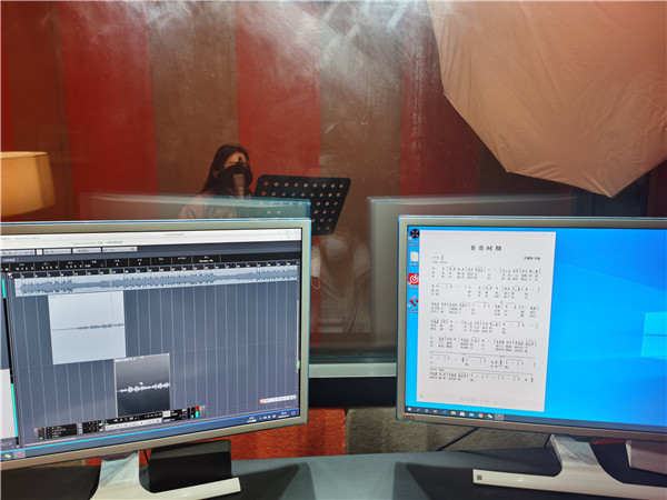 歌手羅米在錄音棚錄製戰「疫」歌曲