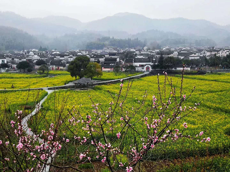 時下,古黟大地重回鮮花的懷抱,境內油菜花、桃花、梨花、李花、鬱金香競相綻放,鄉間春意盎然。据悉,皖浙贛三省交界處、黃山之南的黟縣至今保持一片零疫情的“淨土”。