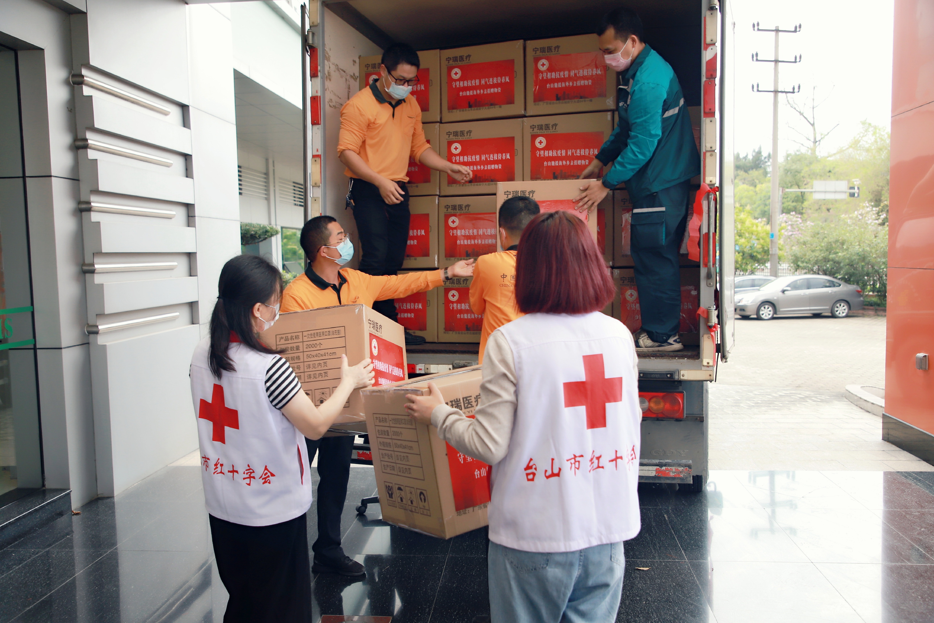 台山市口罩生產企業寧瑞醫療用品有限公司通過市紅十字會向67個海外僑團捐贈20萬隻一次性醫用口罩,與海外鄉親共渡時艱、共同抗疫。