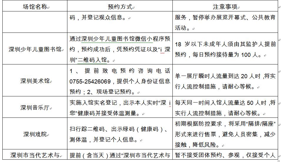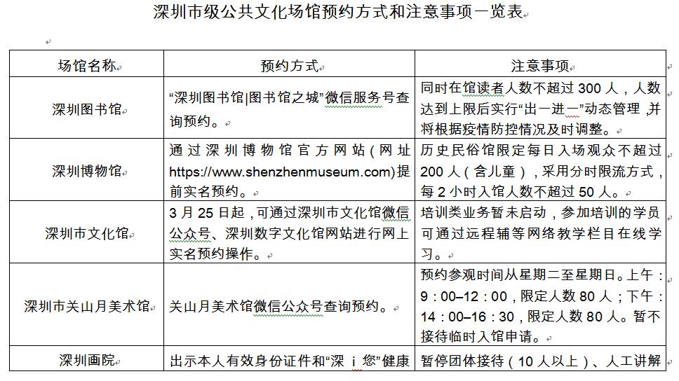 附:深圳市級公共文化場館預約方式和注意事項一覽表