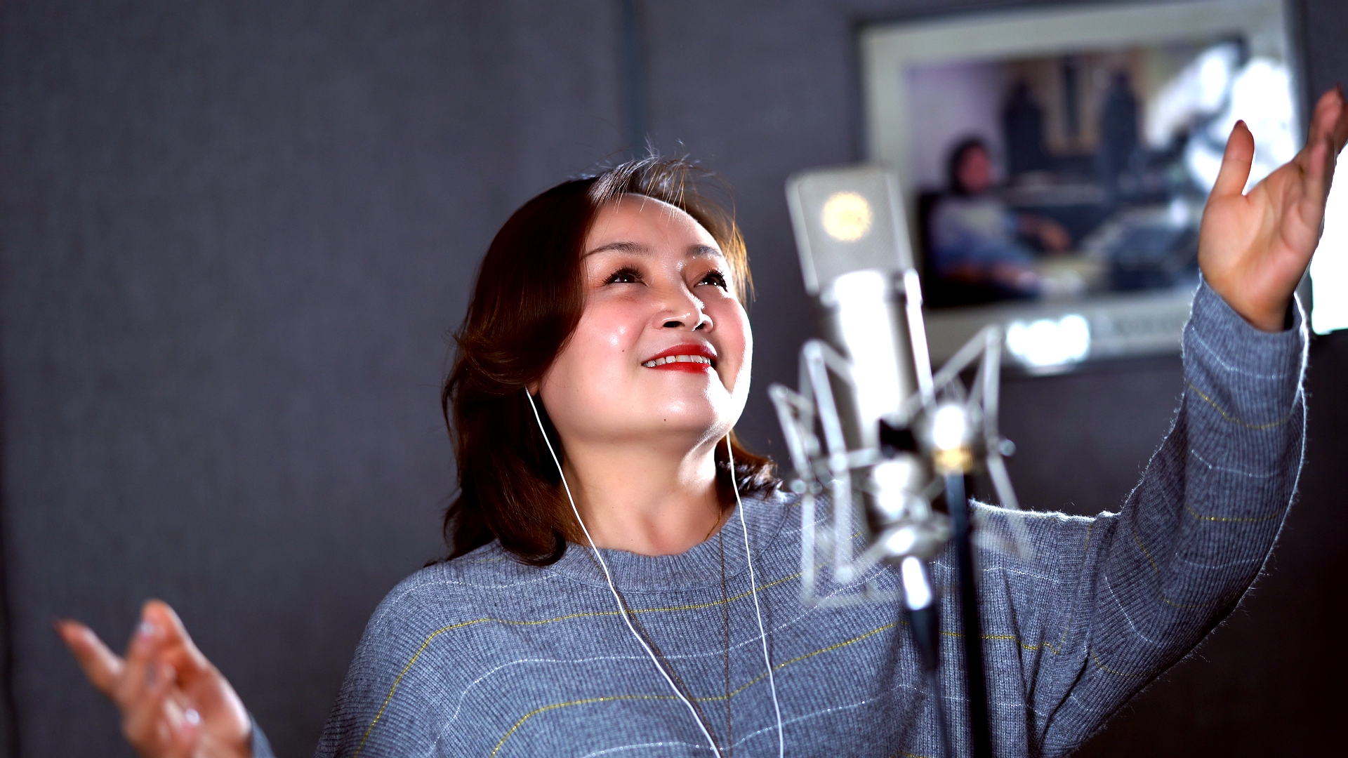張文靜在錄音棚錄製戰「疫」歌曲