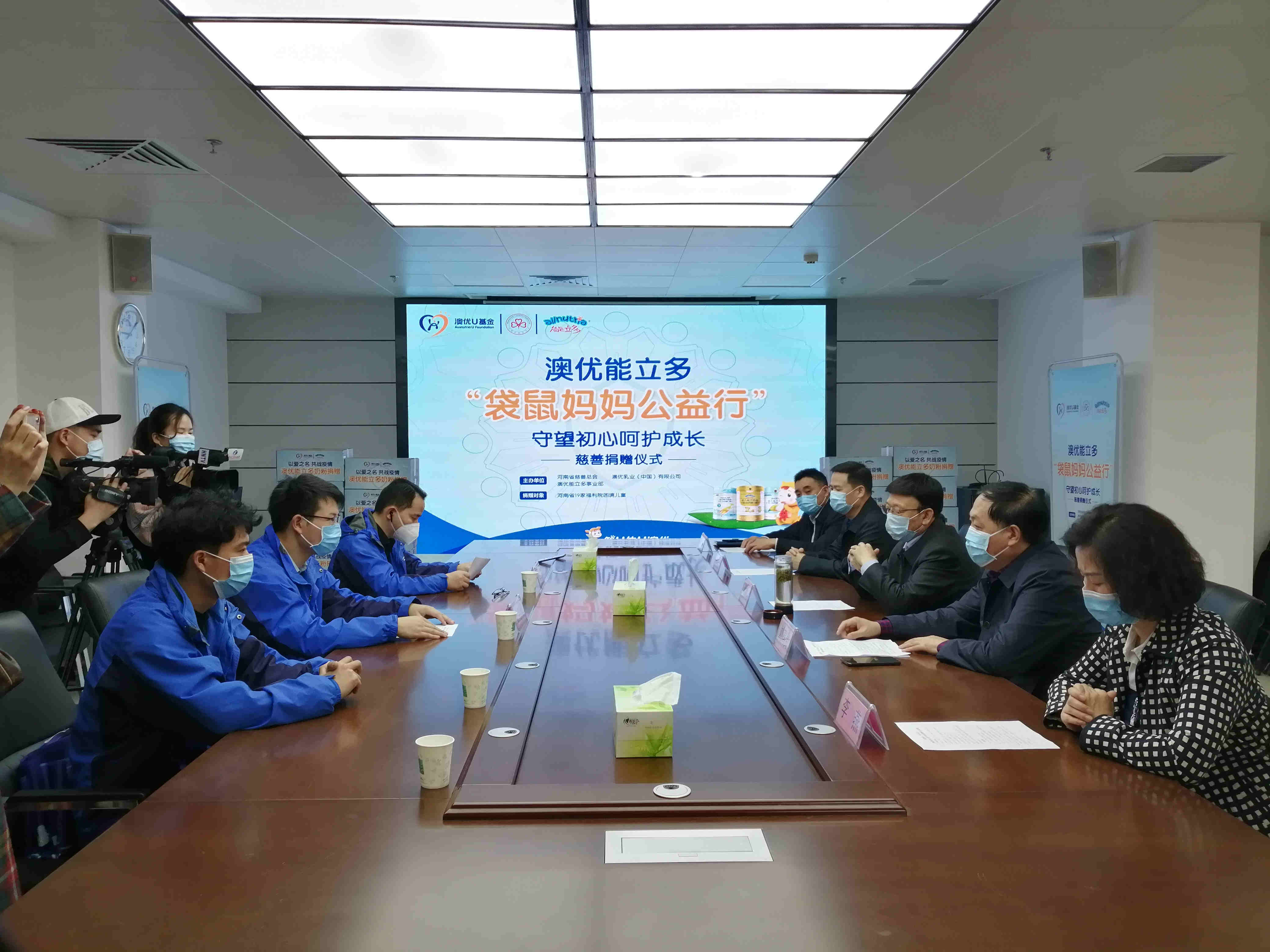 【香港商報網訊】記者 王皓萍 報導:3月26日上午, 「守望初心 呵護成長——袋鼠媽媽公益行」慈善捐贈儀式在河南省慈善總會舉行,河南省國土資源廳原廳長、省慈善總會副會長盛國民,河南省民政廳兒童福利處處長李經宇,河南省慈善總會秘書長劉高貴、副秘書長武偉,鄭州市兒童福利院院長李燕,澳優乳業(中國)有限公司能立多河南大區經理吳小平、鄭州辦經理茹克闊以及新聞媒體記者等參加了捐贈儀式。