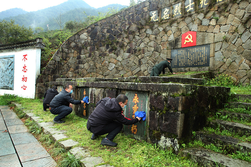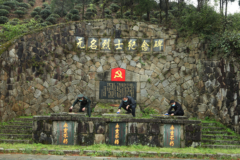 【香港商報網訊】3月26日,休寧縣鶴城鄉退役軍人服務站和鄉人武部工作人員前往六股尖烈士陵園開展祭掃活動,同時拍攝照片發給烈士家屬。