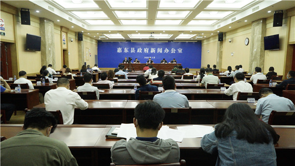 惠東縣人社局黨組書記、局長黃滿琪(中)早發佈會上介紹情況