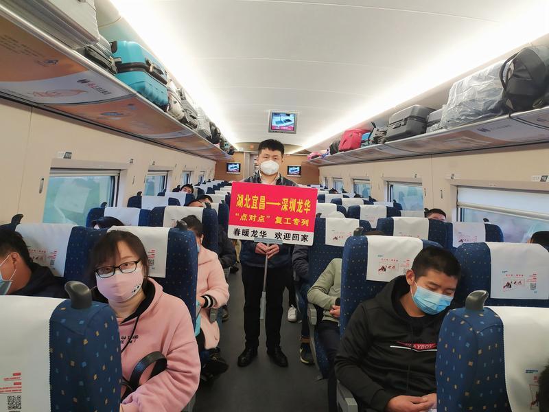 龍華區人力資局相關負責人介紹,為認真落實習總書記關於採取「點對點、一站式」的辦法,集中精準輸送務工人員安全返崗,幫助外地滯留在鄂人員安全有序返鄉的指示精神,按照國家疫情防控工作的決策部署,確保疫情防控和復工復產兩手抓、兩不誤,龍華區結合企業需求,於3月12日開啟江西、湖南、廣西方向的「點對點」專列專車,「一企一方案」「一車一目的地」「一車一方案」為轄區企業免費接返一批老員工及新招募員工,並配合省、市安排,積極開展接返工作。截止3月29日,龍華區已對接全國各地人社部門,接返崗專車(列)56批次2459名返崗務工人員,包括與湖北省秭歸縣、鶴峰縣、鄖陽縣、谷城縣等「點對點」對接,共11批次647名湖北籍勞務工接回企業或住所。