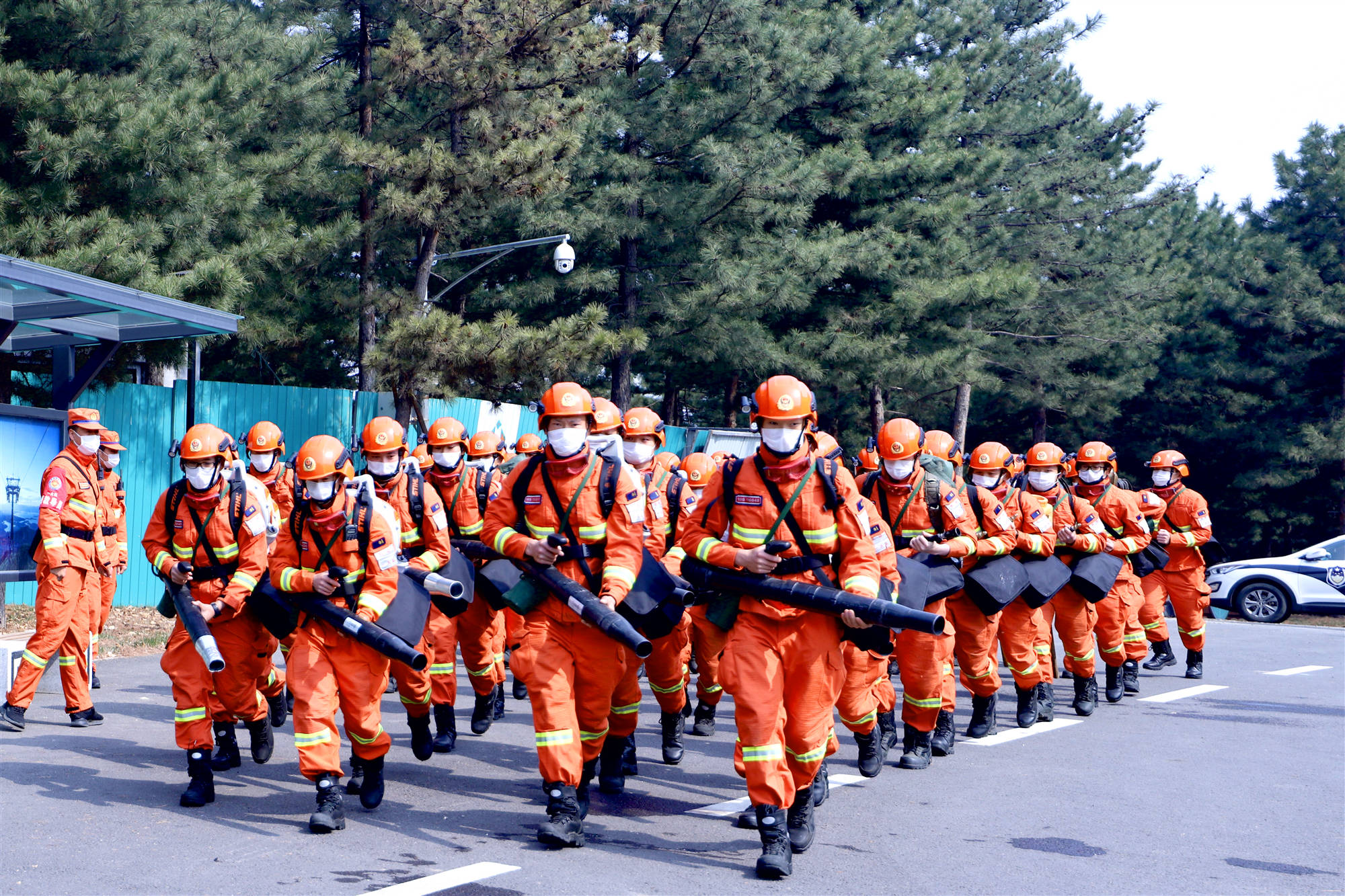 隨後趕來的不老屯、十里堡、巨各庄等8支鎮級撲火隊160人也相繼到達集結地,整理檢查滅火器等設備,聽從調度指揮,跑往「起火點」進行支援。