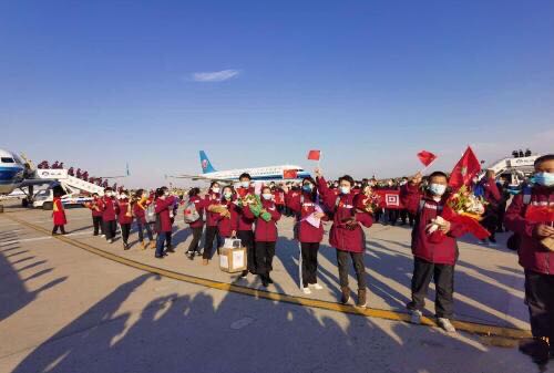 【香港商報網訊】3月31日,黑龍江省第一批援鄂醫療隊的137名醫護人員乘CZ5259航班於16時03分在哈爾濱太平國際機場降落;滿載着黑龍江省第四批援鄂醫療隊哈醫大一院160名隊員的CZ5264航班於16時07分在哈爾濱太平國際機場降落;滿載着黑龍江省第四批援鄂醫療隊哈醫大二院160名隊員的CZ5266航班於16時10分在哈爾濱太平國際機場降落;抗疫勇士凱旋歸來。