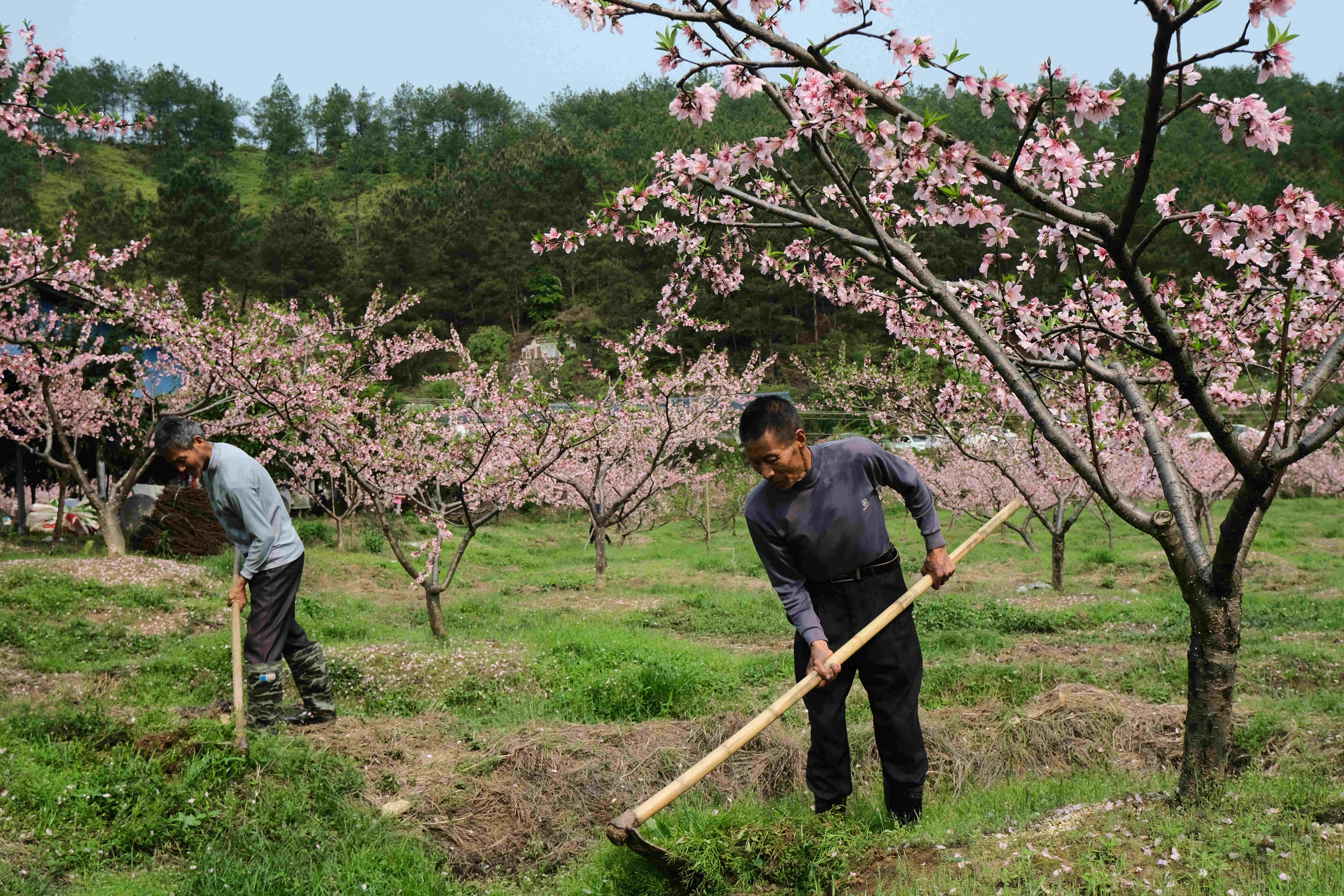 「春分之後,每天人均瀏覽量得有4、5千人。今年免費參觀,提升人氣。周末因為看花的人太多,停車場全滿了,車一直堵到幾公里開外。」黃桃基地的經營者黃鹽水,放下手中提示「注意秩序,文明賞花」的小喇叭,狡黠地笑了笑。原本做生意的他嗅到綠色生態種植的商機,便和親朋合夥搞起了黃桃基地,把井岡山水果批發的生意交由妻子打理。
