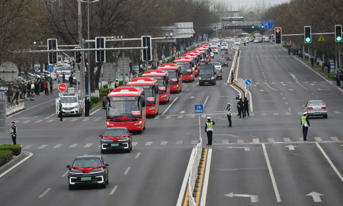 北京市民沿途歡迎北京援鄂醫療隊的白衣戰士們平安歸來
