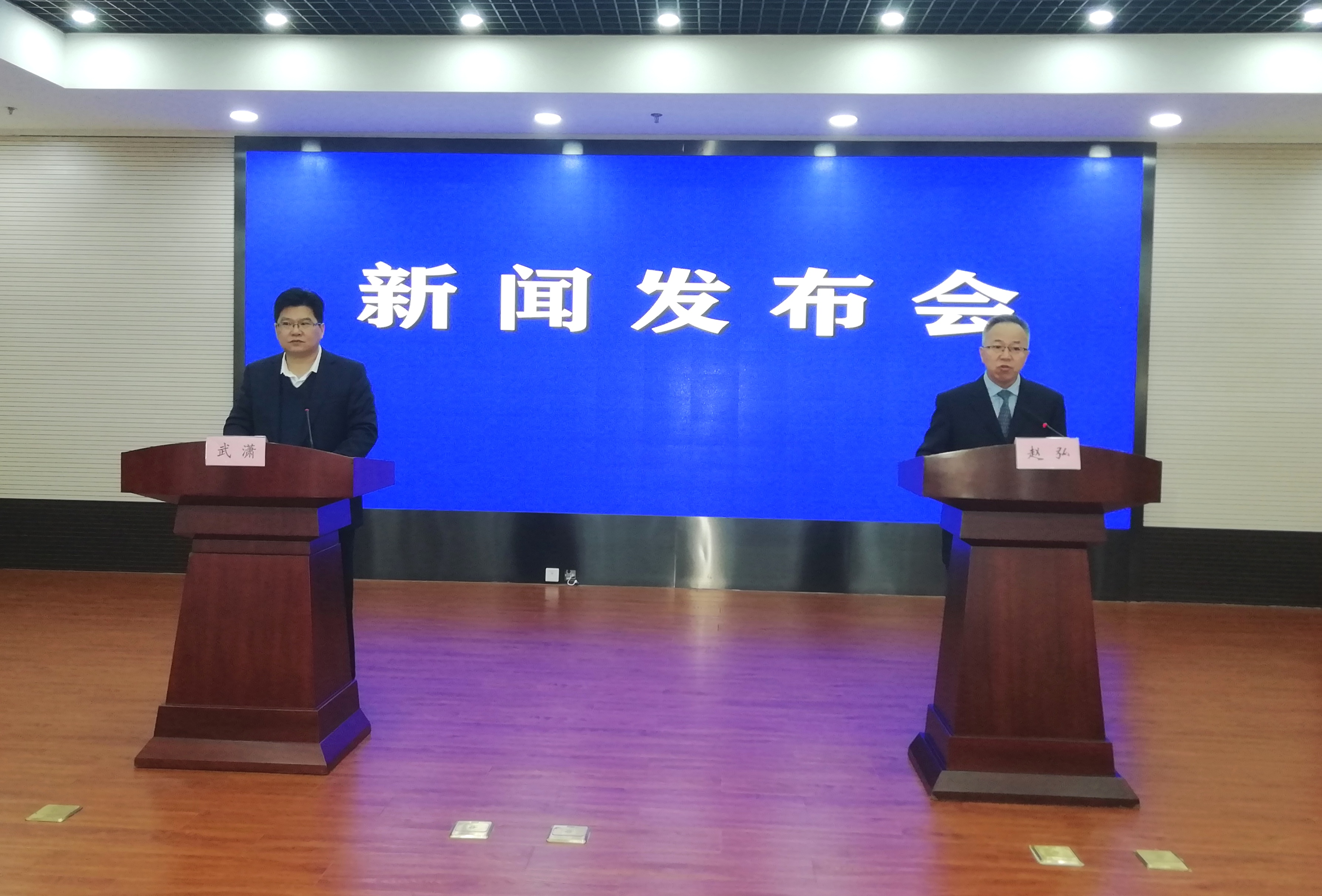 發佈會現場,安徽省委宣傳部新聞發佈處處長武瀟(左)主持發佈會,省稅務局黨委委員、總審計師趙弘介紹相關情況(孫軍/攝)