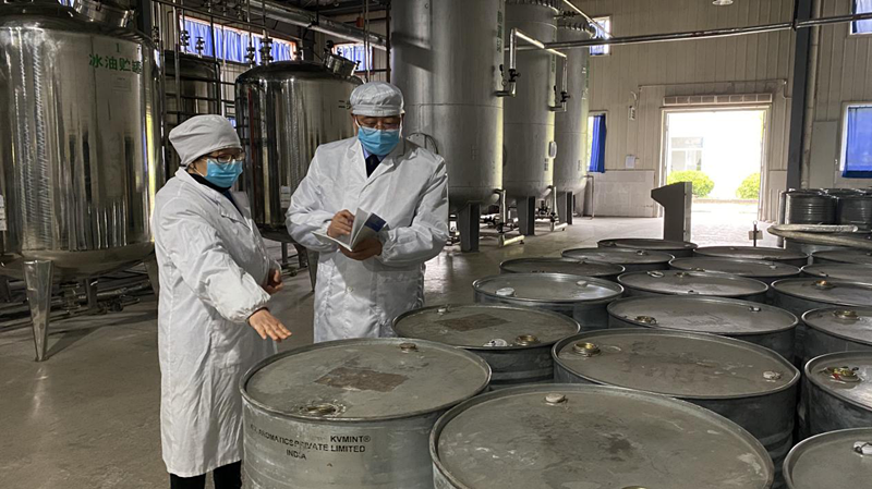 3月31日,記者在黃山天目薄荷藥業有限公司內看到,屯溪區稅務局工作人員正在了解企業生產經營情況和存在的困難。黃山天目薄荷藥業有限公司是一家專業生產薄荷原料藥的企業,公司主要從事薄荷腦和薄荷素油的生產、加工、銷售,其主導生產的薄荷腦是國家高新技術產品。