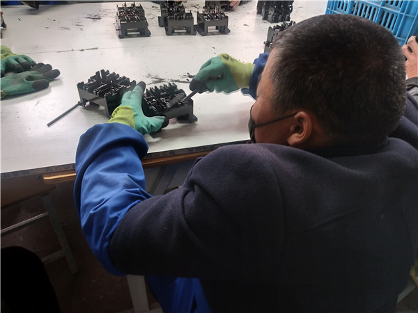 在隔壁的車間里,羅建紅正在為手中的電器塑料件進行去刺加工。“我3歲的時候摔了,脊椎受傷導致雙腿殘疾。此前,輾轉於姐姐弟弟家,感覺給他們添了不少麻煩。”提及自己的往昔,羅建紅有着說不出的心酸。