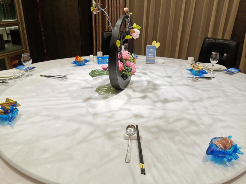 發佈會後,記者們走進了石家莊市光明漁港(裕東店)。其電梯口、走廊等明顯位置都設置了「倡導就餐新風尚,使用公勺公筷」的宣傳欄。李愛旗介紹,該店在3月16日復工時,就已經開始推廣使用公勺公筷了。