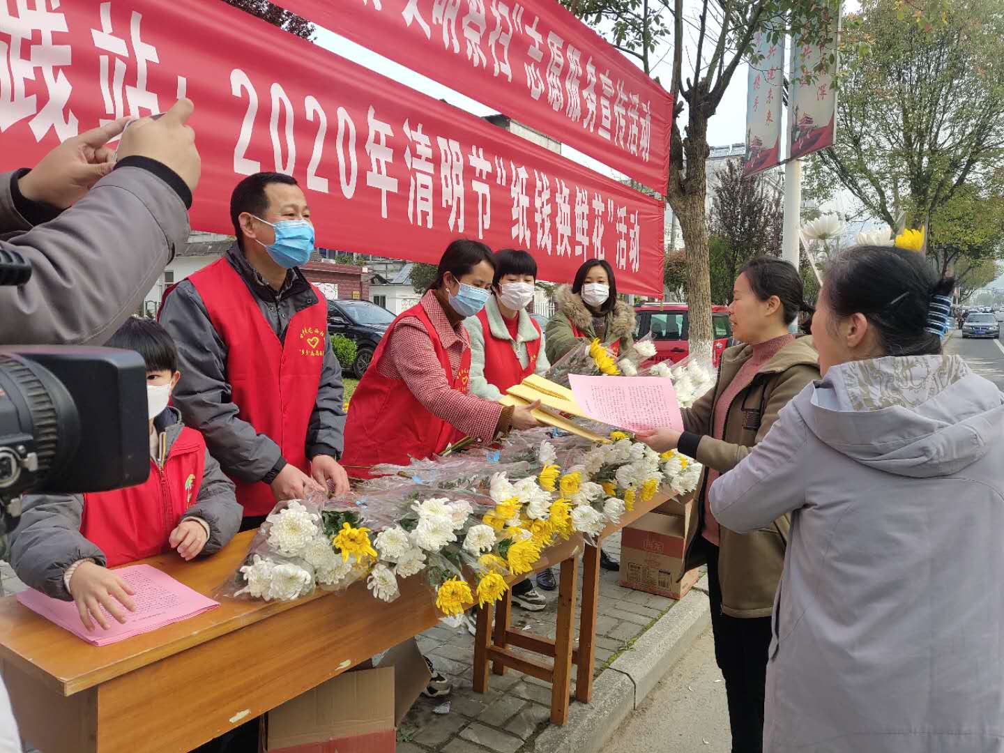 記者瞭解到,清明節當天,黃山市各新時代文明實踐中心(所、站)共設置鮮花兌換點300餘處,參加志願者4500人,共發放(兌換)鮮花23萬束。