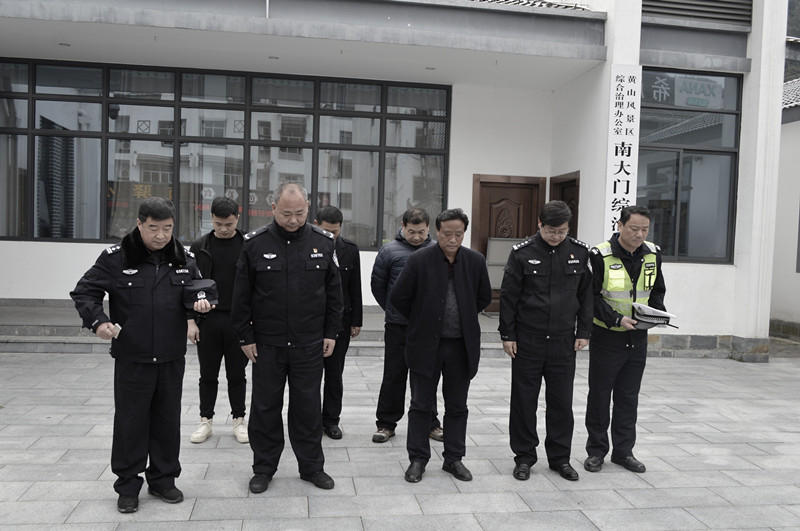 黃山風景區南大門片綜治、交警、交通、派出所、市場監管等部門 200多名幹部員工全員上崗,做好交通、遊覽、經營、治安秩序管理。景區交警支隊提前在主幹道兩側設置錐桶、嚴禁車輛亂停亂放,從清晨6點30分起,在南大門片不間斷進行交通疏導,通過間斷放行等方式,確保交通大動脈暢通有序。