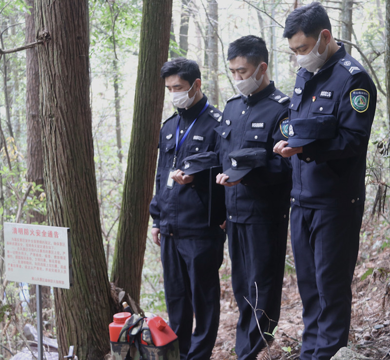 江水嗚咽,山川悲鳴。上午10點整,景區各行各業工作人員和來山遊客在景區深切悼念抗擊新冠肺炎疫情鬥爭犧牲烈士和逝世同胞。黃山南大門片,警車、私家車等自發鳴笛,笛聲久久回蕩山間。(吳敏 侯晏)