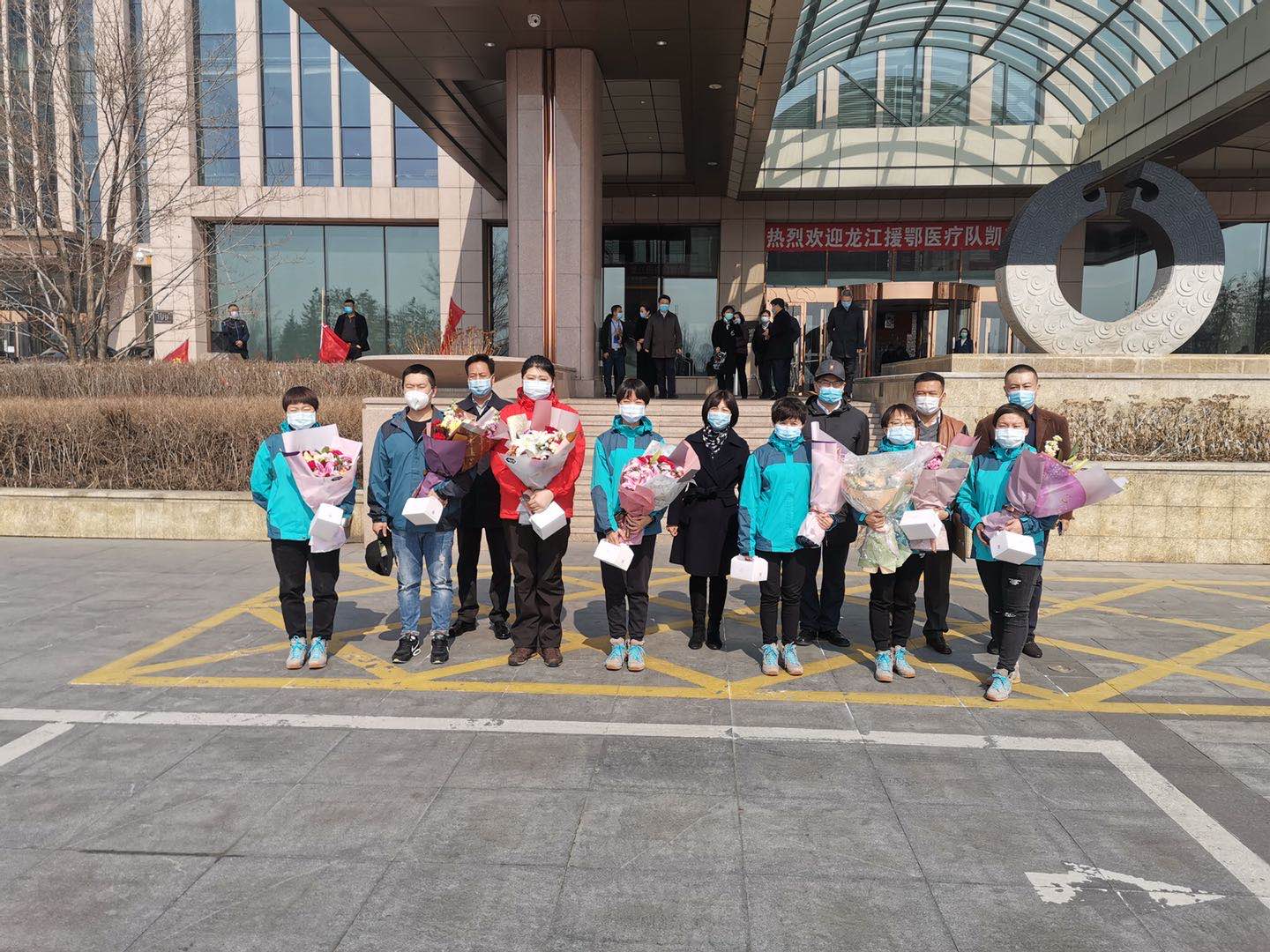 【香港商報網訊】4月6日,哈爾濱市雙城區援鄂醫療隊——7名醫護人員結束戰鬥任務,平安返回家鄉。雙城區在急救中心門診樓前隆重舉行歡迎儀式,迎接雙城最優秀的兒女、最勇敢的抗疫英雄凱旋歸來。雙城區委副書記、區長劉志成出席並講話,區委常委、常務副區長徐鑫主持歡迎儀式,區委常委、統戰部長景麗玲,區委常委、宣傳部長劉宗偉,區人大常委會副主任文立恆等領導出席歡迎儀式。