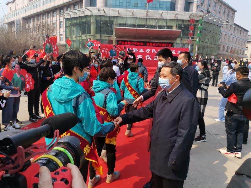 他指出,此時此刻,當湖北和武漢疫情肆虐的時候,當黨和人民最需要醫護人員的時候,你們挺身而出、逆向出征,馳援奮戰在武漢中心醫院後湖區分院,在32個日日夜夜裡,你們用精湛的醫術和良好的職業操守,參與治療搶救了96位新冠肺炎感染者,其中12位是危重症患者。截止你們返回家鄉的時刻,已經有78位治癒出院,無一例死亡。應該說這是驕人的戰績,做為雙城代表隊,你們為家鄉增了光,家鄉人民永遠感謝你們!