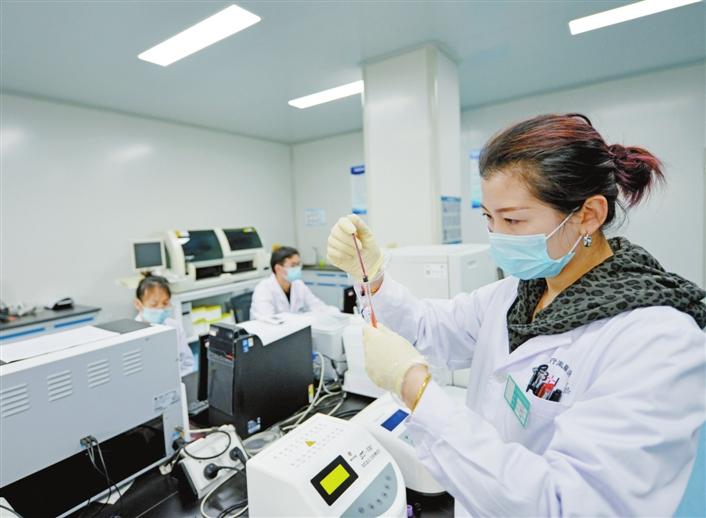 【香港商報網訊】4月8日,安徽新蕪經濟開發區的蕪湖胤星醫學檢驗實驗室的工作人員有序地完成各項樣本的檢測。據了解,疫情期間,該實驗室員工夜以繼日搶時間、趕進度,通過對血常規、炎症指標、呼吸道、細菌、微生物的檢測,為醫生鑒別是否疑似新冠肺炎提供相關的檢測數據,同時,為園區企業返崗復工人員提供篩查服務。