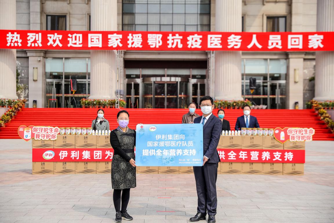 作為健康領域的龍頭企業,伊利一直為抗疫提供支持。3月31日,伊利聯合國家衛健委第一時間向全國所有援鄂醫療隊員提供全年營養支持,用愛心和營養持續守護一線抗疫醫療隊員的健康。這既是疫情爆發後,伊利為一線抗疫群體送去營養關愛的延伸,也將是隊員們回到工作崗位後,伊利迎接他們的一聲聲暖心問候。國家衛生健康委食品安全標準與監測評估司一級巡視員張磊時表示肯定和讚賞:“伊利為疫情防控工作做出了重要貢獻,此次伊利第一時間為凱旋歸來的國家援鄂醫療隊提供全年營養支持,用愛心和營養持續守護隊員們的健康,這一切都讓我們看到了龍頭企業的社會責任與擔當。”