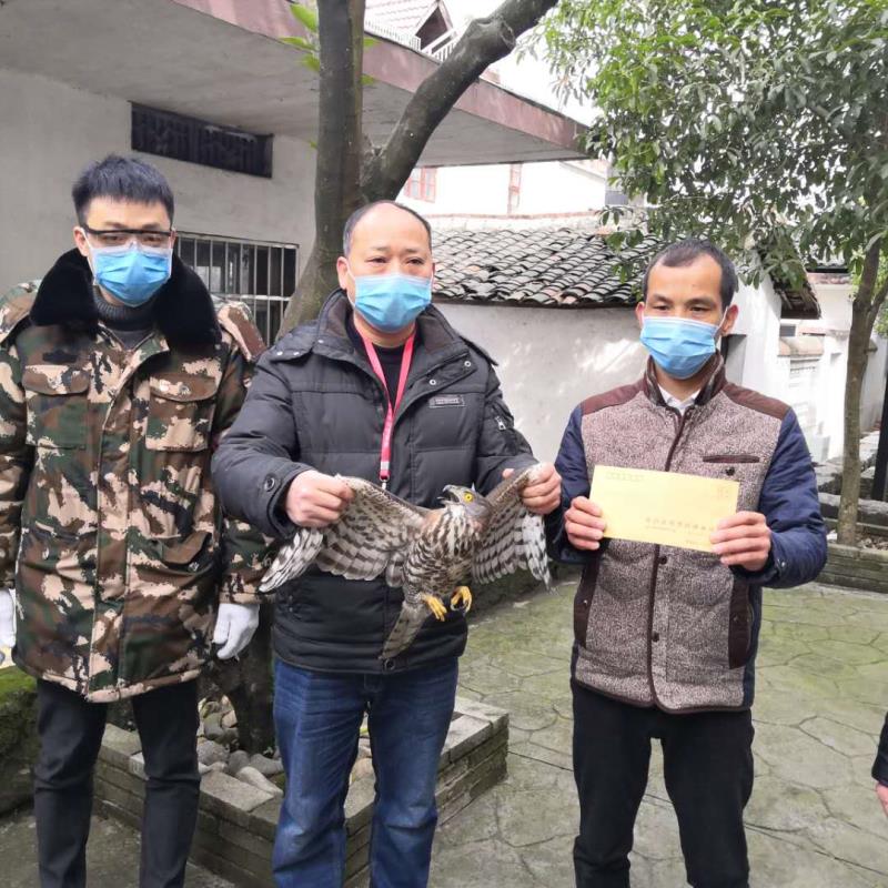 區林業局對太平鎮泮溪村民救助鳳頭鷹進行現金獎勵