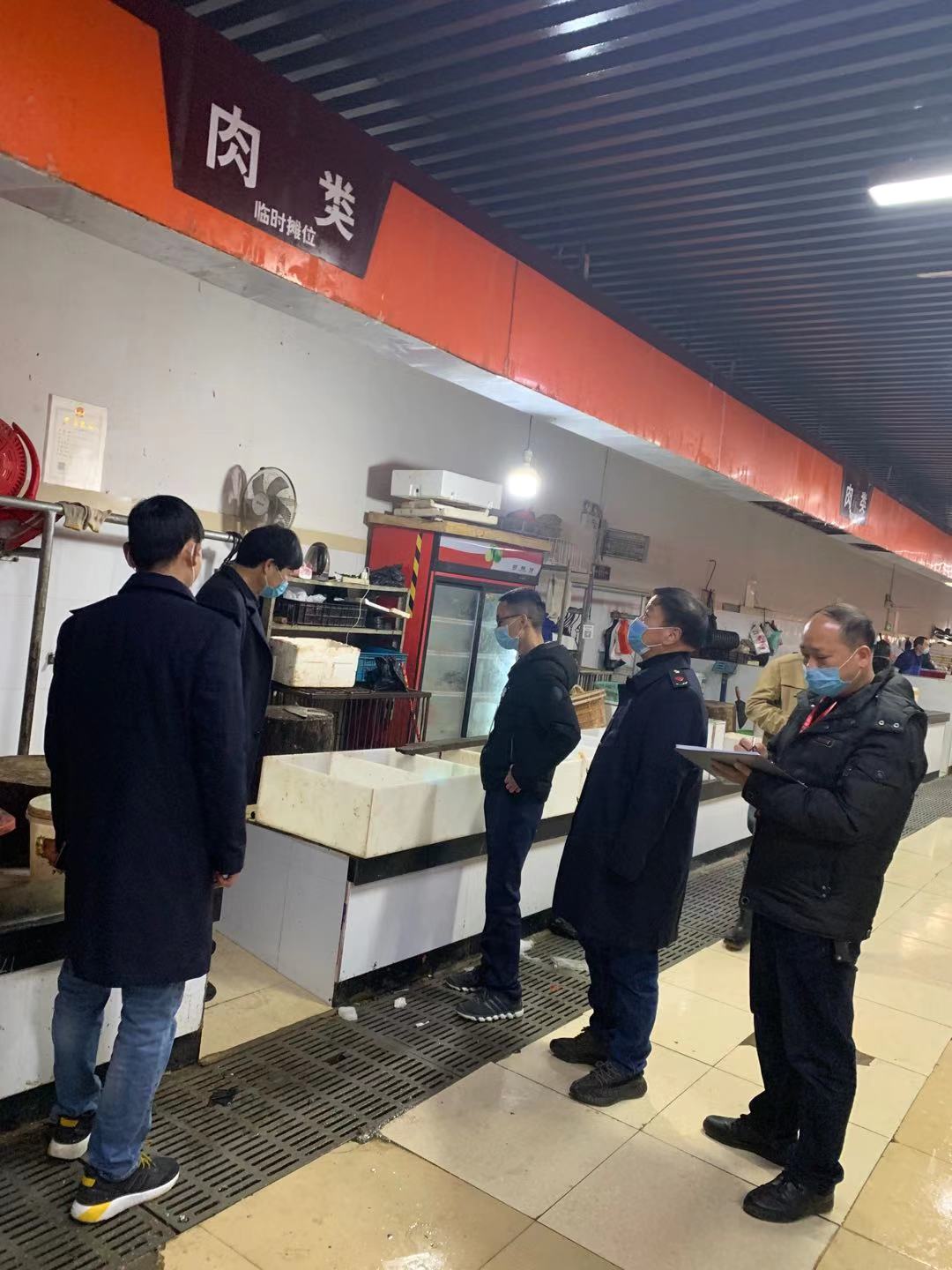 區野生動物管控組工作人員對農貿市場進行檢查,禁止野生動物交易行為