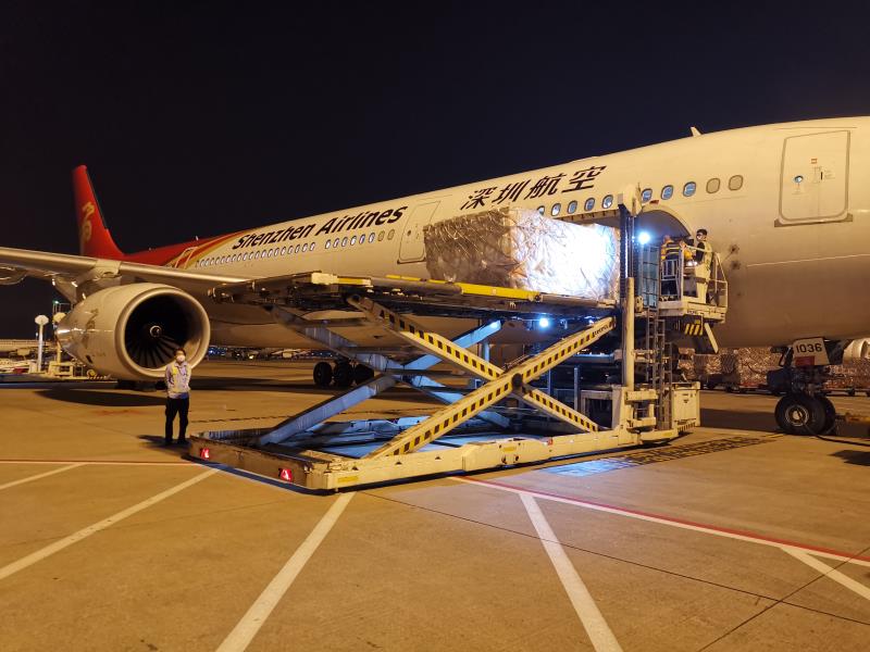 此次深圳-曼谷A330飛機客改貨包機,共承運包括防護口罩、體溫計、電子產品、工業加工原料等共計21噸貨物。在接到運輸任務後,深圳航空第一時間與在民航深圳監管局、深圳機場海關、深圳機場等單位溝通協調,及時完成境內外航權時刻申請、運行論證、航班保障等準備工作,保障該批物資準時高效抵達。