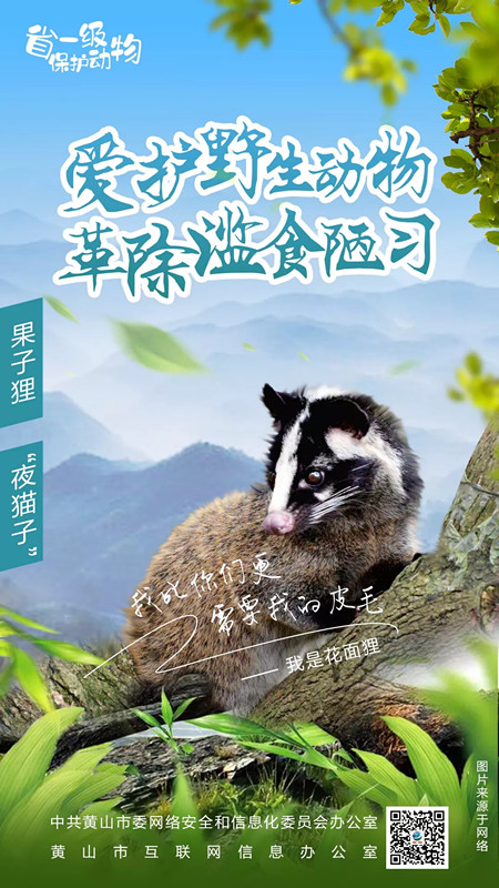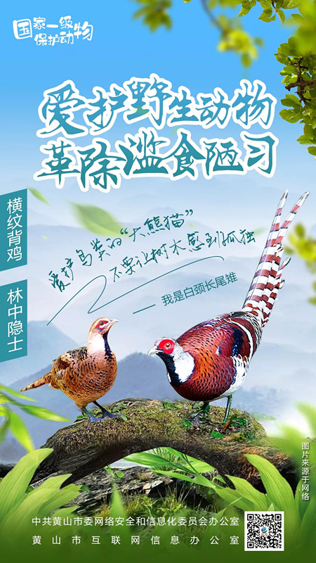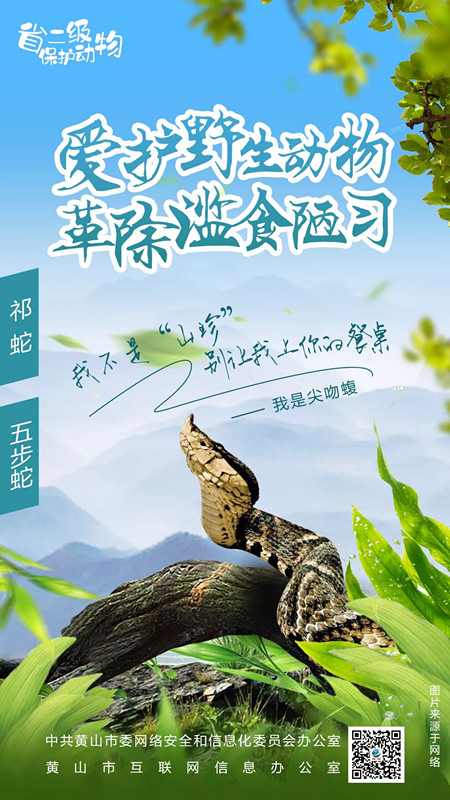 黃山市委宣傳部相關負責同志指出:“保護野生動物,就是保護人類自己”,這不僅是防控新型冠狀病毒引發肺炎疫情時期的社會共識,也是構建人類命運共同體、實現人與自然和諧共生必須始終堅守的信條。為維護生物安全和生態安全,促進人與自然和諧共生,今天我們有責任做得更好,為了自然界的生命,也為了自身健康,遵守法規、人人有責,革除陋習、從我做起,讓我們攜手同心,愛護生態環境、保護野生動物。