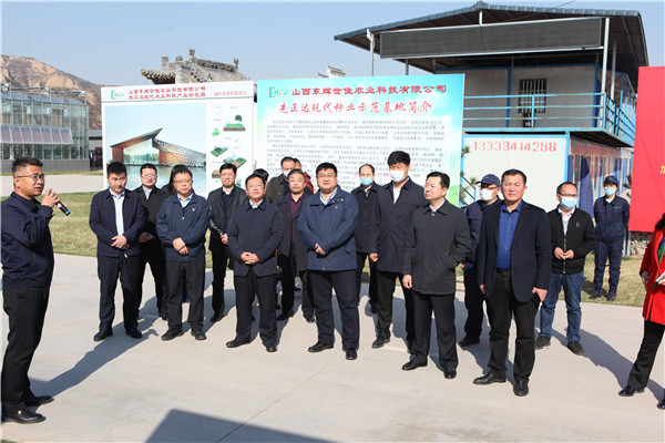 在山西農谷調研時,山西省投資促進局黨組書記、局長楊春權一行瞭解了先正達現代種業示範基地項目建設情況。(韓立堃 攝)