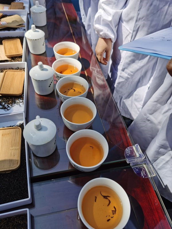 當日上午,在鬥茶比賽現場,5 名市級茶葉評審專家先後對選送的紅茶、綠茶、古樹茶等 17 個茶樣進行評選,稱樣、投茶、沖泡、出湯 …… 一杯杯色澤明亮的茶湯展現在大家眼前。這個茶湯呈橙色,且清澈、這個茶湯香味濃郁 …… 評審專家們通過望、聞、沏、嘗,對茶樣從外形、湯色、香氣、滋味、葉底等指標進行評分。