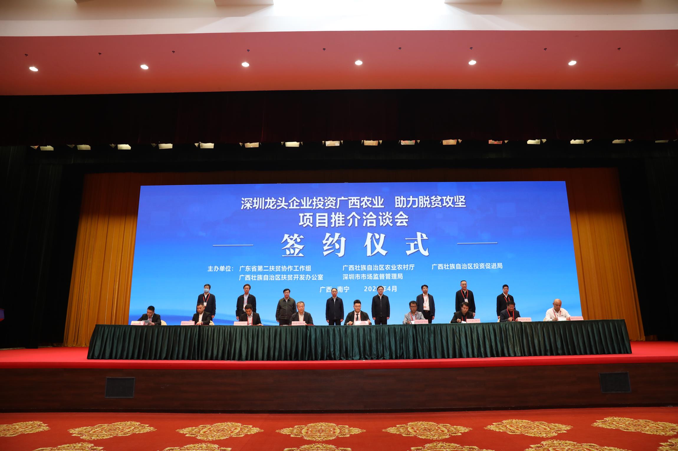 【香港商報網訊】記者 李麗芳 報導:今年是扶貧攻堅戰決戰決勝之年,14日舉行的深圳龍頭企業投資廣西農業助力脫貧攻堅項目推介洽談會上,20多家著名的深圳龍頭企業與廣西百色、河池等地簽訂4.5億元農業產業合作項目,幫助廣西抗疫情助脫貧。
