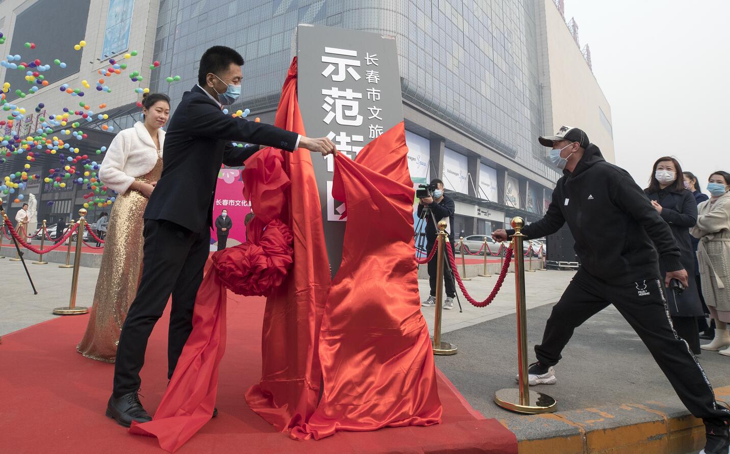長春市委常委、宣傳部長趙明,市文廣旅局局長曲笑分別為首批示範街區揭牌,市文廣旅局、示範街區屬地宣傳部、文廣旅局及企業相關負責人、媒體記者、消費者代表參加揭牌儀式。(王丹)