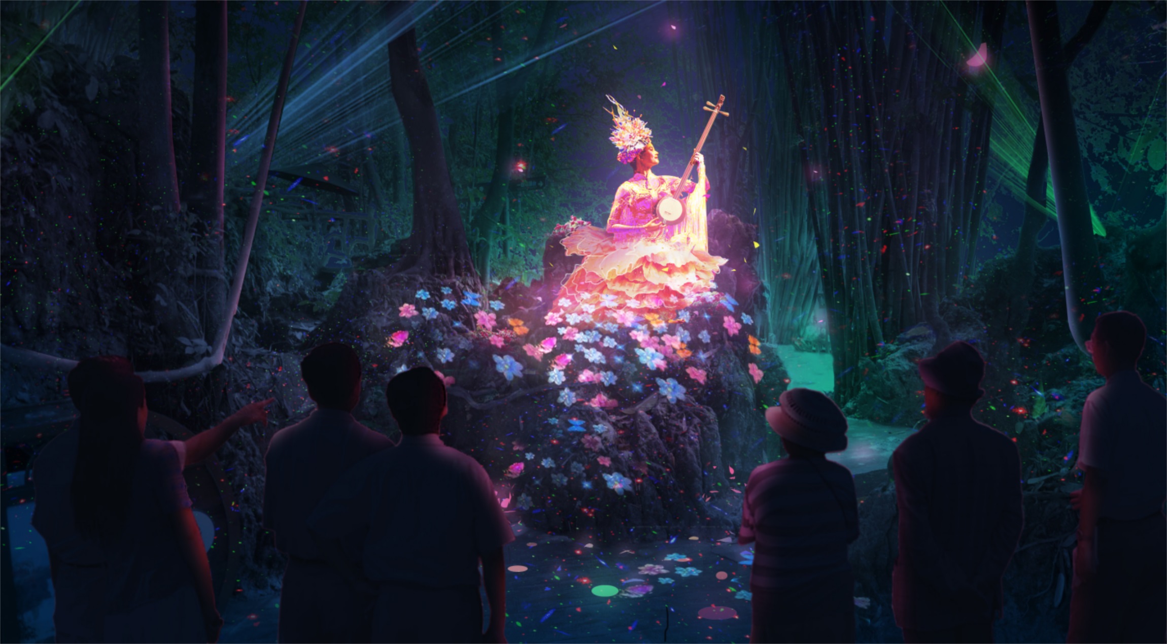 據了解,「奇妙·夜德天」項目總投資約1.2億元,項目配套設施包含叢林棧道、石林景觀、德天寺休憩廣場、瀑布聲動體驗區、擊鼓平台體驗區等。該項目將通過挖掘壯族先民的生活習俗、文化傳承淵源,並藉助高科技的聲、影、動畫、遊戲互動、故事情節演繹等手法還原當時的先民生活遺跡。其中夜遊故事傳承動線有11幕互動體驗環節構成,包含「螞拐節、尋蛙神、入人間、定終身、花賜福、祈雨來」等。夜遊遊客動線將採取夜遊探秘指引循環的方式,開啟夜遊「奇妙·夜德天」主角就是我的奇幻之旅。全程夜遊體驗互動約75分鐘,每日最大接待量約3000人次。