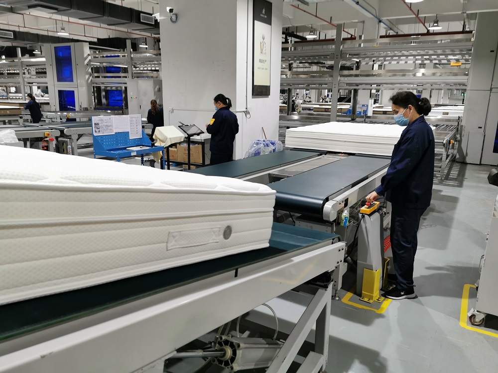 從床墊面料車縫、邊條處理,表面噴膠,粘合到質檢包裝,一個個床墊在自動流水線上高效完成。記者走訪東莞慕思寢室用品有限公司(下稱「慕思」)生產車間看到,幾千平米的車間與以往勞動密集型的「東莞製造」不同,員工操作流水線上的機械手、機械人運轉有序。