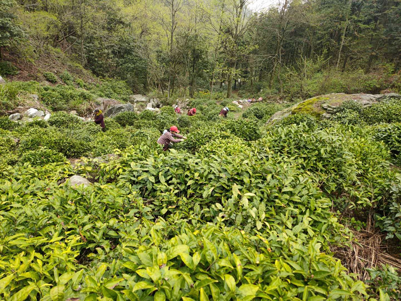 【香港商報網訊】4月16日,陽光晴好,在安徽黃山市黟縣美溪鄉海拔600多米的拜祭堂有機生態茶園基地,二十餘名採茶工正忙碌著採摘鮮葉。“平時在家打打零工,茶葉季忙的時候就過來採茶,好的時候每天有150元的收入,我覺得挺好的。”採茶工汪志英笑著說。