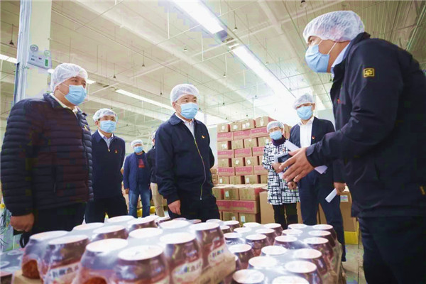 3月25日,平谷區委書記王成國(左前二)圍繞企業復工復產及防疫工作展開專題調研,先後到北京冷鏈在線電子商務有限公司、北京康安利豐農業有限公司、北京春播科技有限公司,實地察看企業復工復產和防疫工作落實情況,強調要用足用好支持政策,加快推動企業復工復產達產達效,統籌做好疫情防控和經濟社會發展工作。(平谷宣傳部供圖)